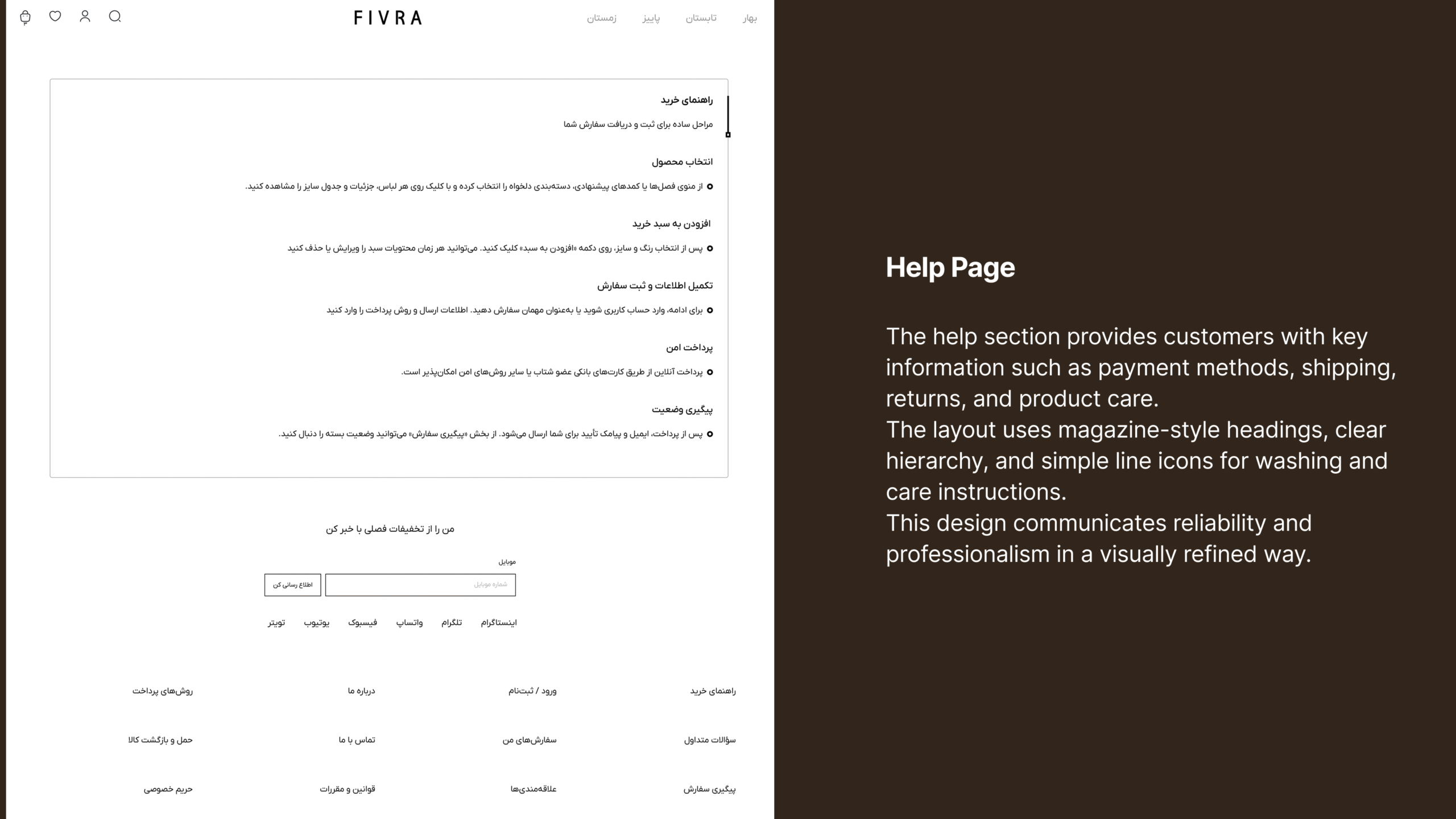 Fivra یک فروشگاه آنلاین لباس زنانه است که با هدف ایجاد تجربهای احساسی، فصلی و در عین حال مدرن طراحی شده است.